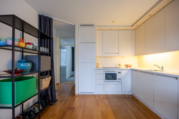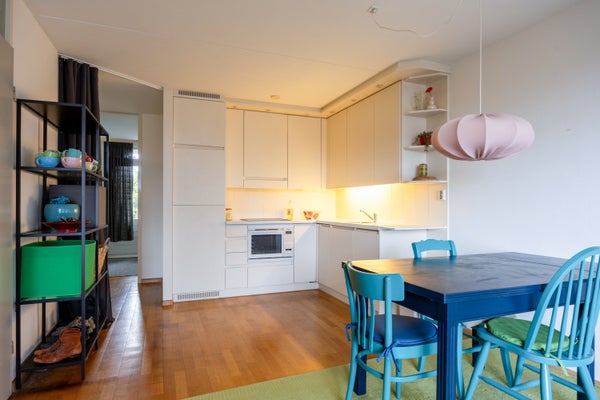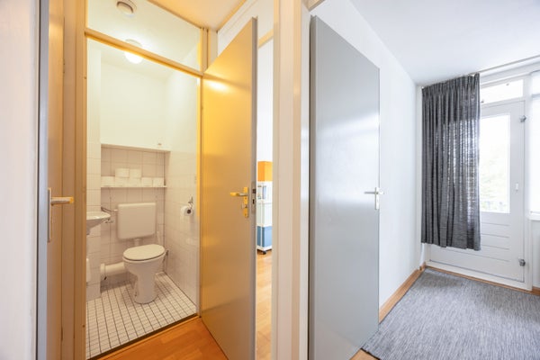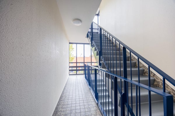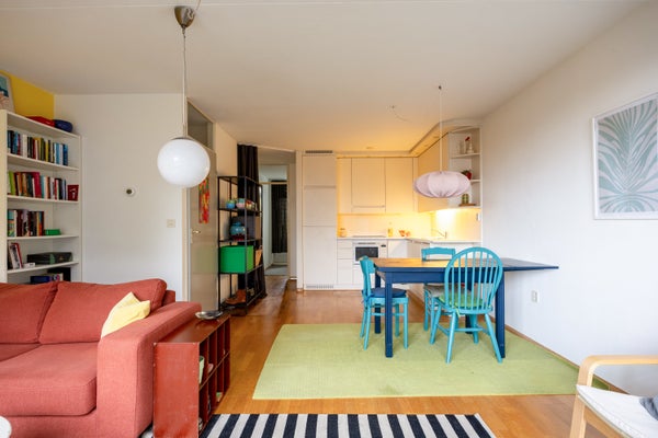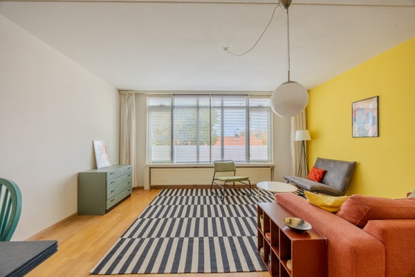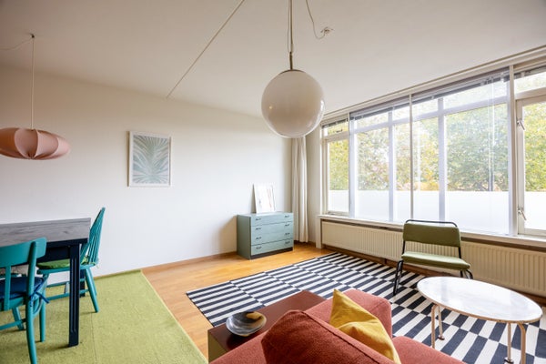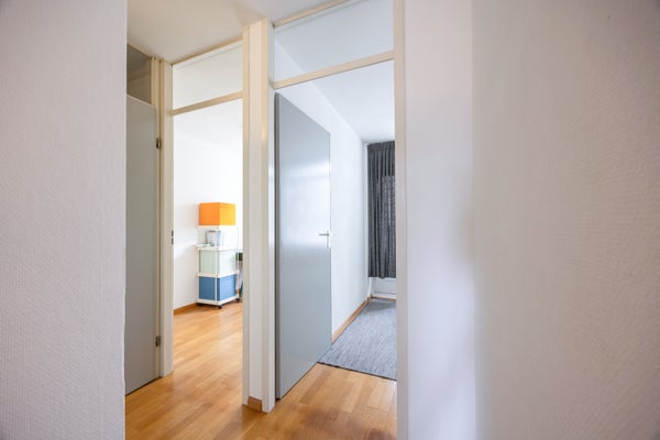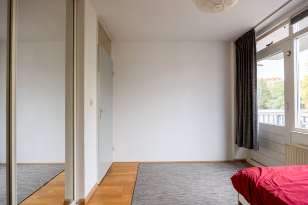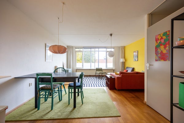 - De portiekflat heeft een woonoppervlakte van 56 m² en beschikt over 3 kamers, waarvan 2 slaapkamers;