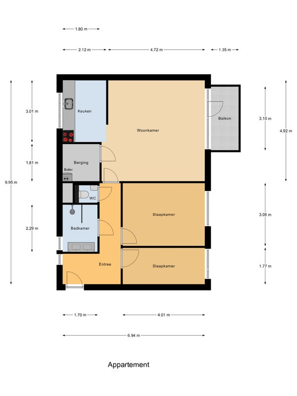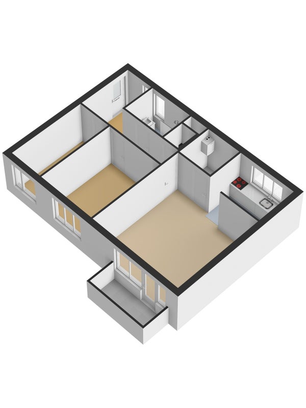- De galerijflat heeft een woonoppervlakte van 68 m² en beschikt over 3 kamers, waarvan 2 slaapkamers;