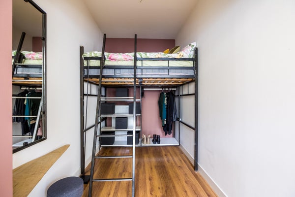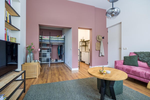 • De benedenwoning heeft een woonoppervlakte van 29 m² en beschikt over 2 kamers, waarvan 1 slaapkamer;