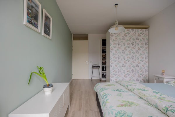 - De portiekflat heeft een woonoppervlakte van 92 m² en beschikt over 3 kamers, waarvan 2 slaapkamers;