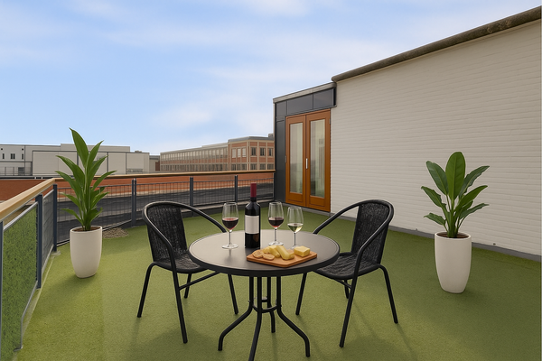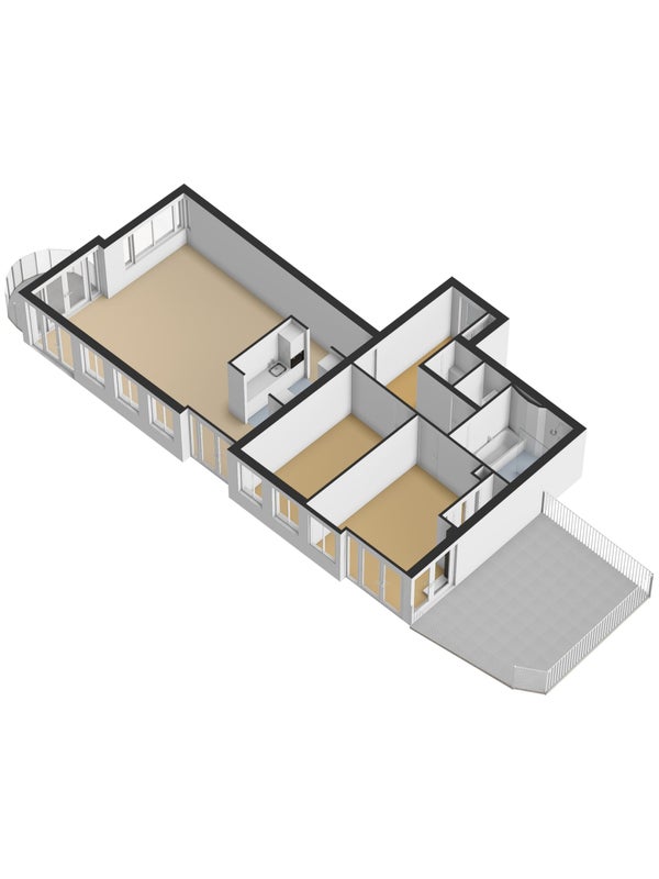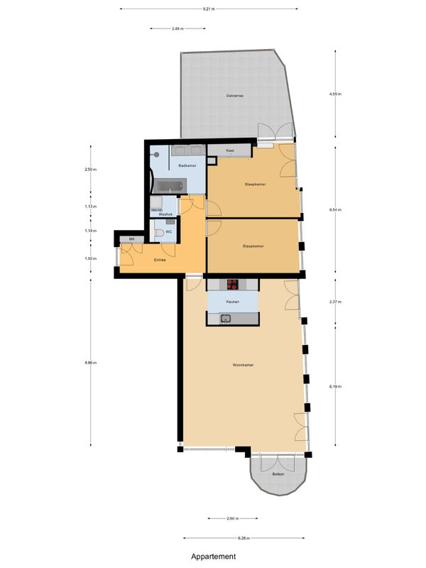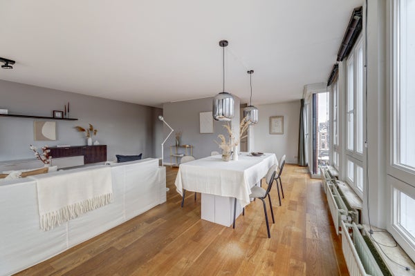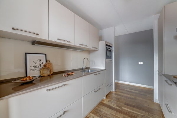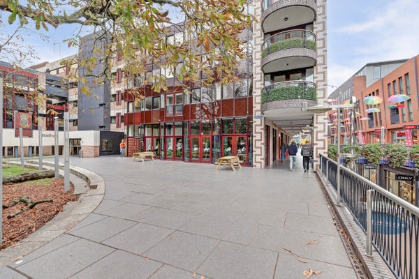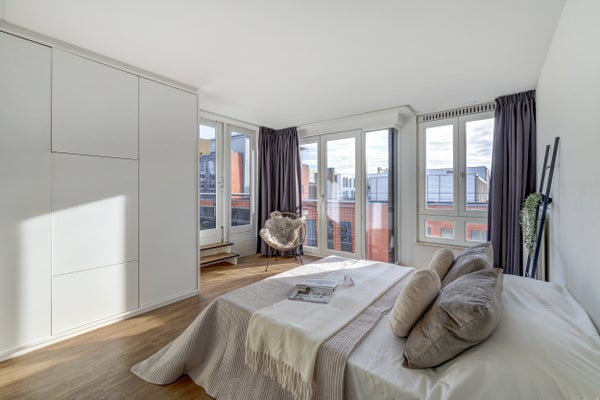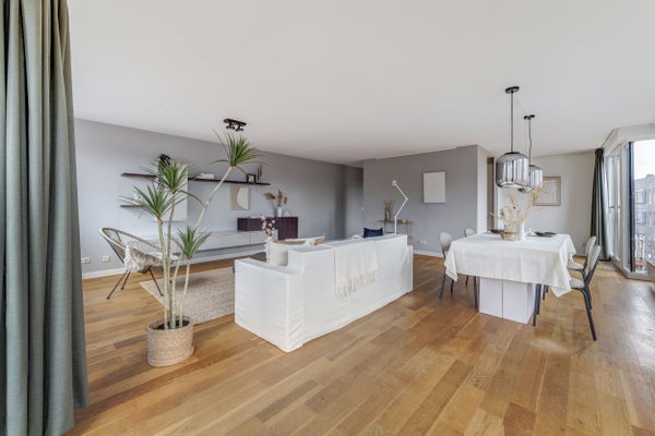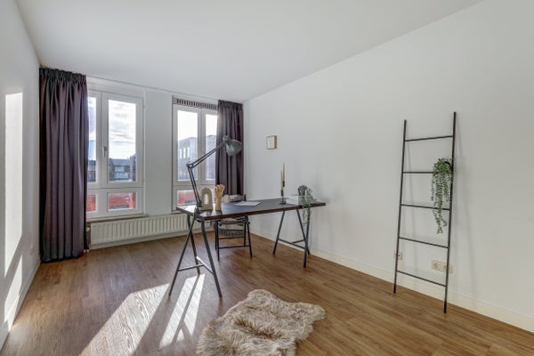 - De galerijflat heeft een woonoppervlakte van 110 m² en beschikt over 3 kamers, waarvan 2 slaapkamers;