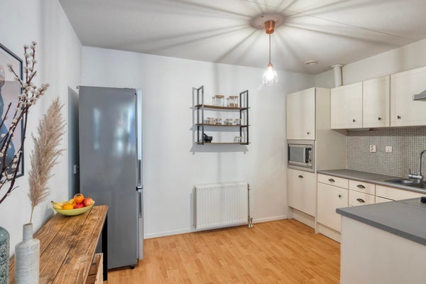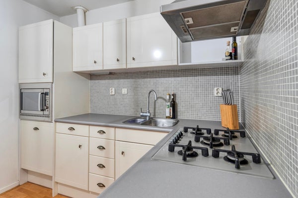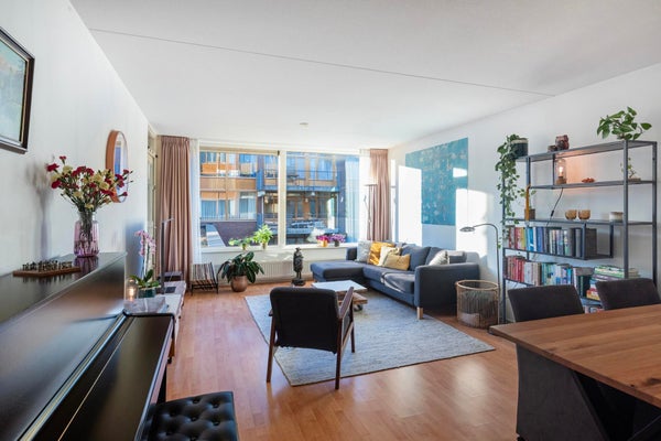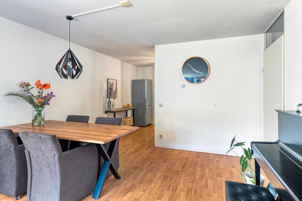 De woonkamer is een fijne leefruimte met een prettige indeling. Dankzij de slimme opzet creëer je hier moeiteloos een gezellige zithoek én een comfortabele eethoek. De halfopen keuken sluit hier mooi op aan, waardoor koken en samenzijn vanzelf samengaan.