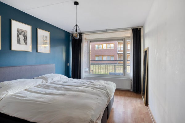 - De portiekflat heeft een woonoppervlakte van 86 m² en beschikt over 3 kamers, waarvan 2 slaapkamers;