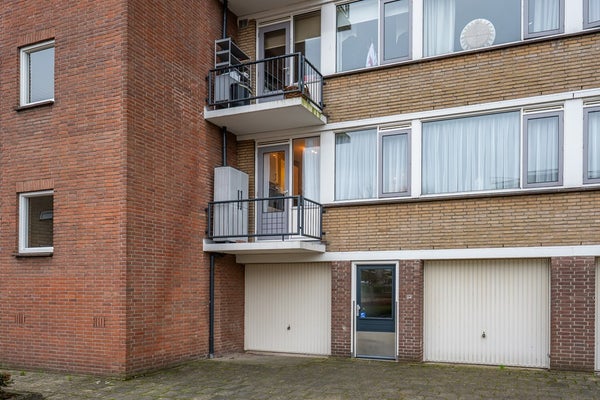 Met de trap of lift wordt de 1e etage bereikt waar het appartement zich bevindt en een gemeenschappelijk hal deelt met 1 ander appartement. Via de voordeur toegang tot de hal met de meterkast en een bergkast. Aan de voorzijde is de lichte woonkamer, welke op het zuiden is georiënteerd. Hier is nu een zithoek met leuke doorkijk de straat in en de eettafel. Naast de woonkamer is een ruime slaapkamer met toegang tot het zonnige balkon op het zuiden. Deze kamer wordt nu gebruikt als hobbyruimte en logeerkamer. In de optietekening is een voorbeeld geschetst hoe de woonkamer vergroot kan worden als de kamers aan de voorzijde worden verbonden.