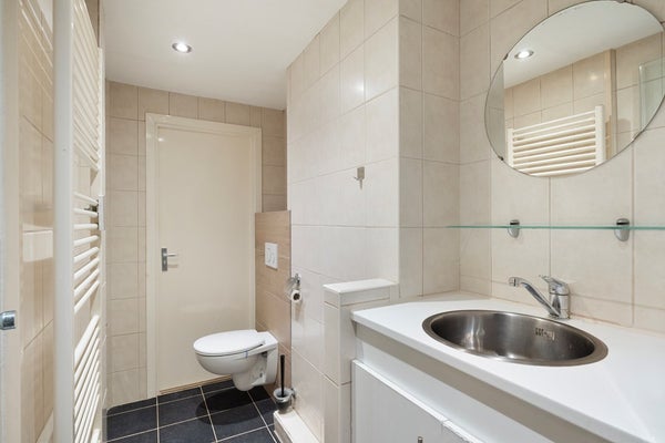Aan de linkerzijde ligt de badkamer, voorzien van een douchecabine, handdoekradiator, wastafelmeubel en toilet. Dankzij de grote raampartijen heeft de woonkamer een prettige lichtinval. De slaapkamer bevindt zich aan de balkonzijde en is eveneens licht en aangenaam. Het balkon is gelegen op het oosten, waardoor u hier ’s ochtends heerlijk van de zon en een kopje koffie kunt genieten.