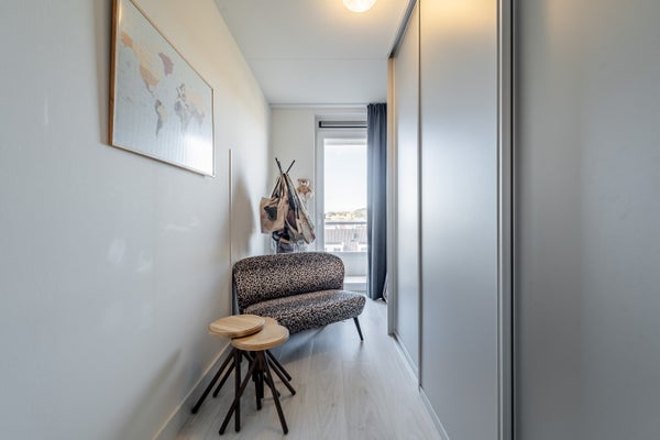 - De portiekflat heeft een woonoppervlakte van 75 m² en beschikt over 3 kamers, waarvan 2 slaapkamers;
