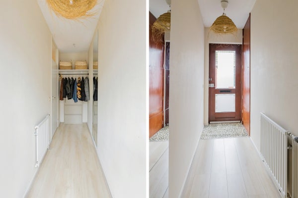 Kom binnen via de eigen voordeur in de prettige hal met een mooie garderobe nis: welkom thuis!