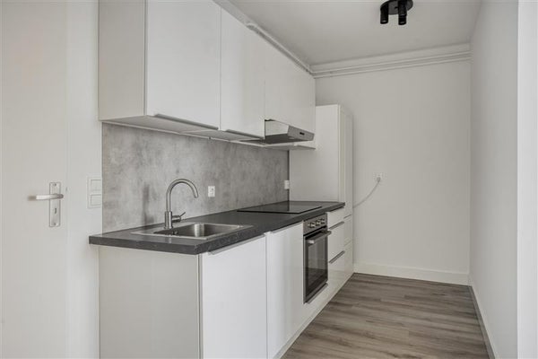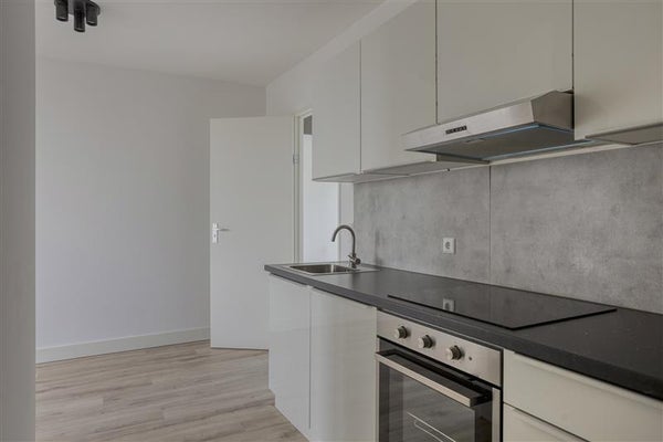 De moderne open keuken (2024) is voorzien van een inductiekookplaat, recirculatiekap en oven. De opstelplaats van de boiler (80 liter) bevindt zich in de keuken.