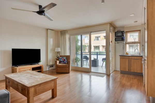 - De portiekflat heeft een woonoppervlakte van 55 m² en beschikt over 3 kamers, waarvan 2 slaapkamers;