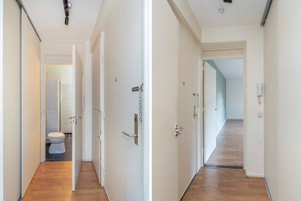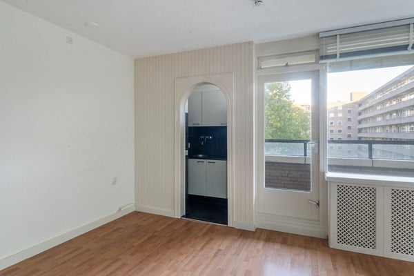 - De portiekflat heeft een woonoppervlakte van 43 m² en beschikt over 2 kamers, waarvan 1 slaapkamer;