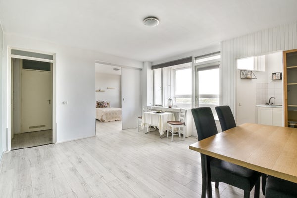 - De portiekflat heeft een woonoppervlakte van 44 m² en beschikt over 2 kamers, waarvan 1 slaapkamer;