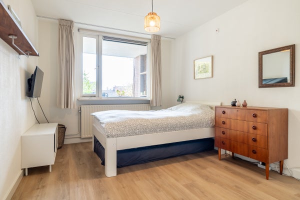 In residentie de Bussel vindt u een ruim 2-kamer appartement van ongeveer 75 m², ooit een 3-kamer optie, compleet gemoderniseerd in 2011. Het appartement ligt op de eerste verdieping en biedt een zonnig balkon op het zuidoosten met prachtig uitzicht. De indeling bevat een lichte woonkamer met eetgedeelte, een open keuken van alle gemakken voorzien en een moderne badkamer met inloopdouche. De slaapkamer is aan de achterzijde gelegen. Bij de woning hoort een berging van circa 3 m² in de souterrain. Het appartement bevindt zich in het hart van het centrum, nabij winkels en het busstation. De servicekosten bedragen circa € 282,65 per maand, exclusief gas en elektriciteit.