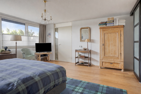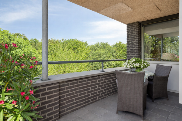 In een groene, parkachtige setting ligt dit riante penthouse op de vierde verdieping van gebouw Loverendaele, met een oppervlakte van circa 160 m². Het appartement heeft een royaal balkon met uitzicht op de natuur en bevindt zich op korte loopafstand van Domburg en het Noordzeestrand. De centrale entree biedt toegang via trap of lift. Binnen vind je een ruime hal die leidt naar de open Poggenpohl keuken en eetkamer, die aansluit op de lichte woonkamer. Het slaapgedeelte bestaat uit een master bedroom met walk-in closet en een tweede slaapkamer, beide nabij een compleet uitgeruste badkamer.
