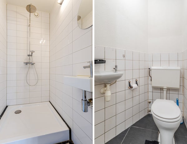 - De benedenwoning heeft een woonoppervlakte van 46 m² en beschikt over 2 kamers, waarvan 1 slaapkamer;