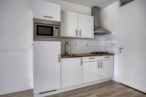 - De keuken is voorzien van een gas-kookplaat, een afzuigkap, inbouwkoelkast, een combimagnetron;