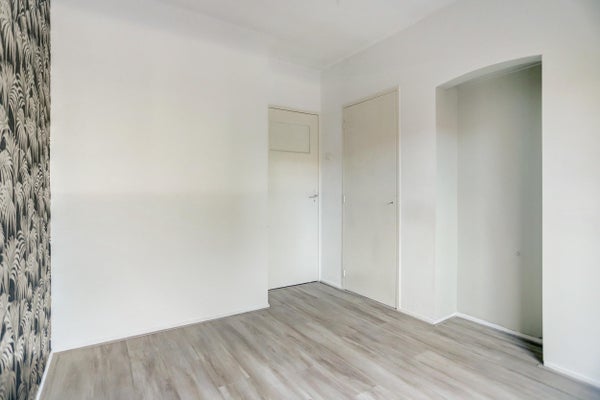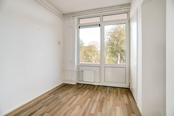 Het appartement beschikt over twee slaapkamers, beide groot genoeg voor een tweepersoonsbed. In één van de kamers bevinden zich de aansluitingen voor wasmachine en droger, evenals de cv-installatie. De badkamer is overzichtelijk ingedeeld, voorzien van een inloopdouche en een wastafel met spiegel. Het separate toilet is vanuit de entree toegankelijk.