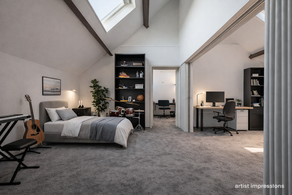 De vide is vrij in te delen en kan bijvoorbeeld dienstdoen als werkplek, tv-kamer of opslagruimte. Daarnaast bevindt zich op deze verdieping een slaap-kamer met dakraam en vaste kasten. Er is bovendien de mogelijkheid om hier een extra slaapkamer te realiseren.
