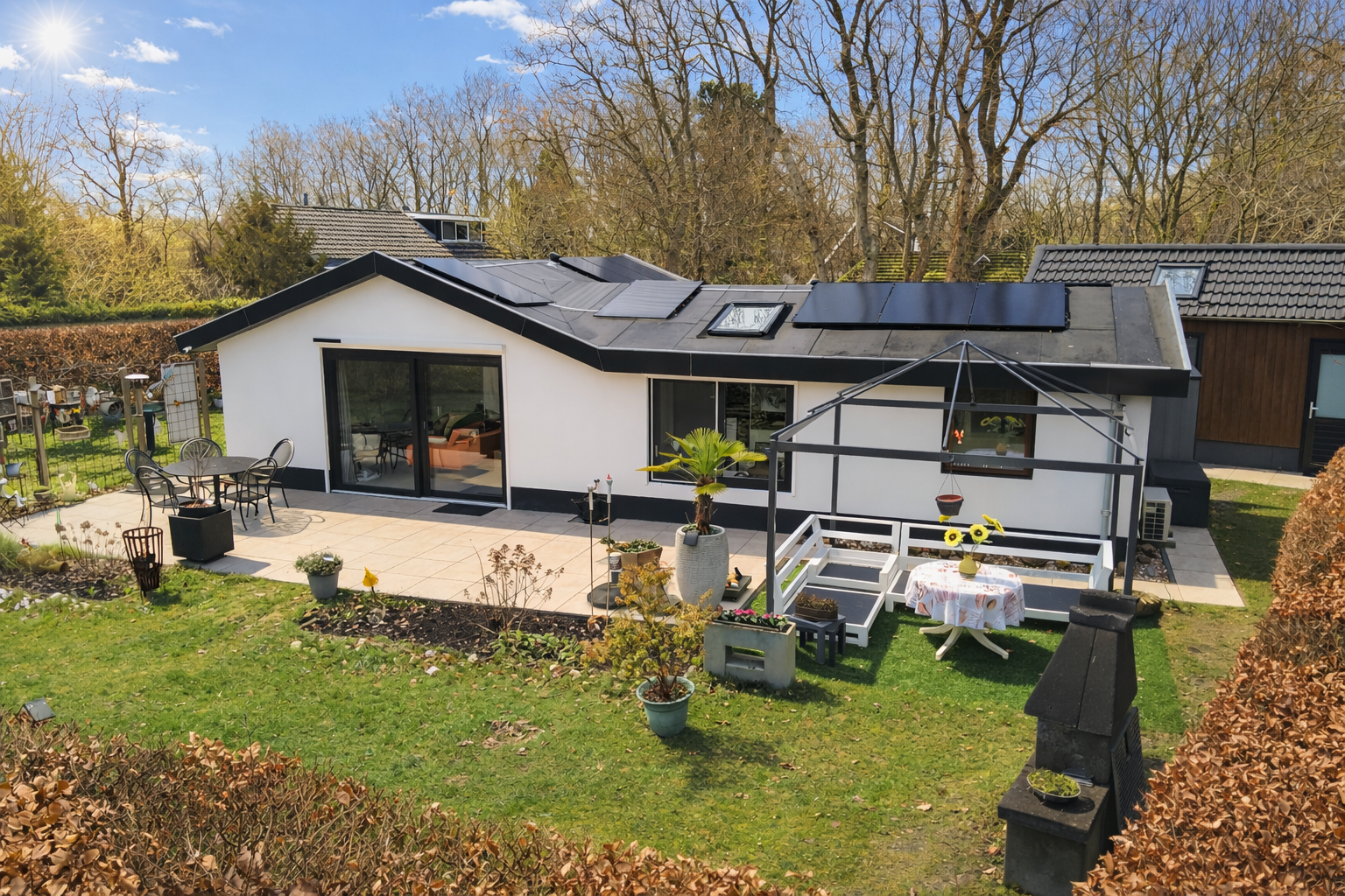 Deze vrijstaande, luxe recreatiewoning in Ouddorp biedt op 598 m² eigen grond de perfecte combinatie van comfort en ontspanning. Gelegen in het kleinschalige park ''De Jonkerstee'', op loopafstand van het strand en het dorpscentrum, geniet je hier van rust en natuur. De woning beschikt over een moderne keuken, drie slaapkamers en twee badkamers. Voor extra comfort zijn er airconditionings, zonnepanelen en een vernieuwd bitumen dak uit 2024. In de fraai aangelegde tuin staat een luxe berging met sauna, perfect voor ontspanning na een stranddag. Met vloerverwarming en energielabel C is het een zorgeloze investering in een tweede woning dichtbij al het moois van Ouddorp. Een ideale plek voor diegenen die permanente vakantie wensen.