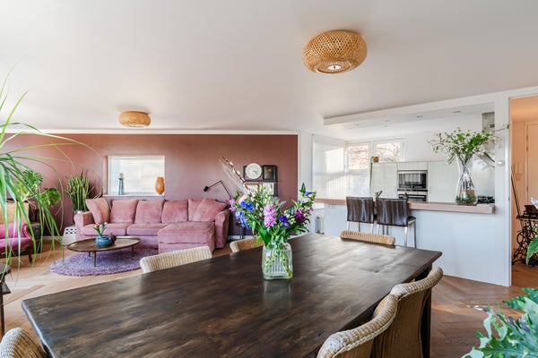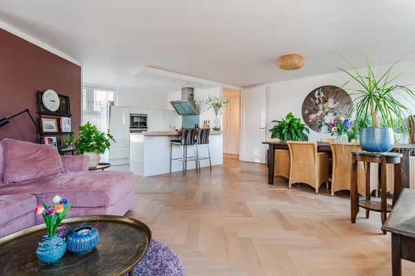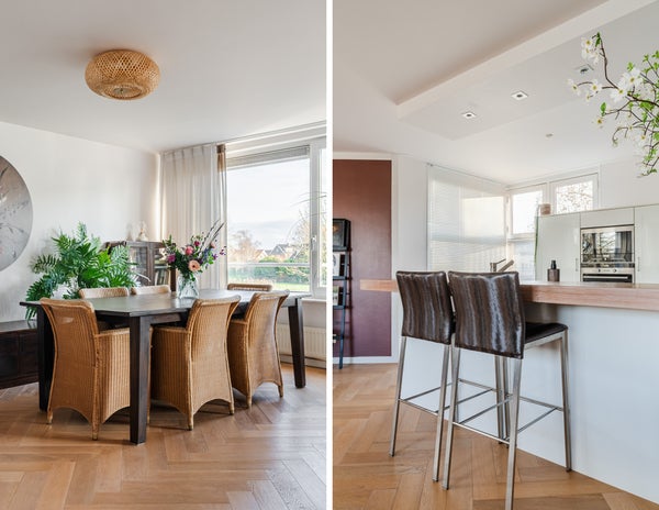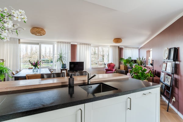 Home begins at Dijkgraaf 111 in Ouderkerk aan de Amstel. This bright and surprisingly designed corner apartment of approximately 101 m² is located on the first floor of the "De Dieze" apartment complex and immediately feels inviting. Thanks to the many windows, abundant natural light floods in throughout the day, and from the living room, you can enjoy a beautiful, unobstructed view. The southeast-facing balcony is a lovely place to sit and soak up the sun.