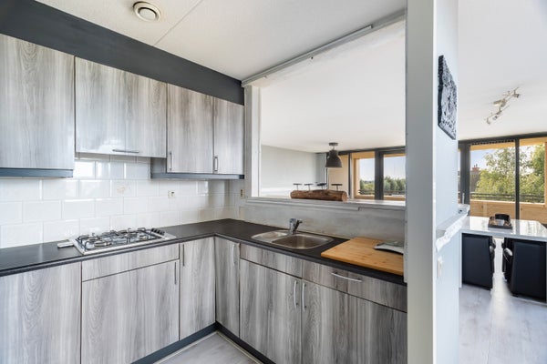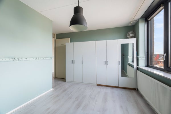 - De portiekflat heeft een woonoppervlakte van 98 m² en beschikt over 3 kamers, waarvan 2 slaapkamers;