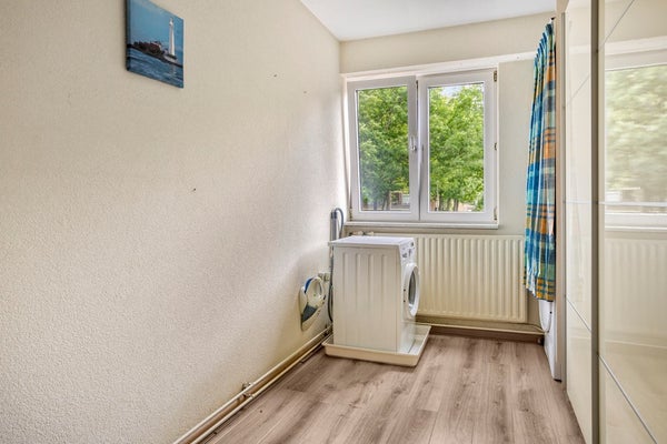 - De portiekflat heeft een woonoppervlakte van 90 m² en beschikt over 3 kamers, waarvan 2 slaapkamers;