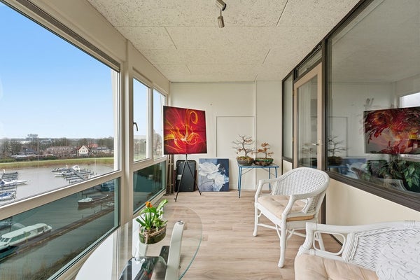 Loggia: Vanuit de woonkamer of slaapkamer bereikt u de loggia met prachtig uitzicht over de rivier en de jachthaven van Papendrecht. De ruimte is voorzien van een grote raampartij en een zonnescherm, waardoor u hier uitstekend kunt genieten van het uitzicht en de zon.