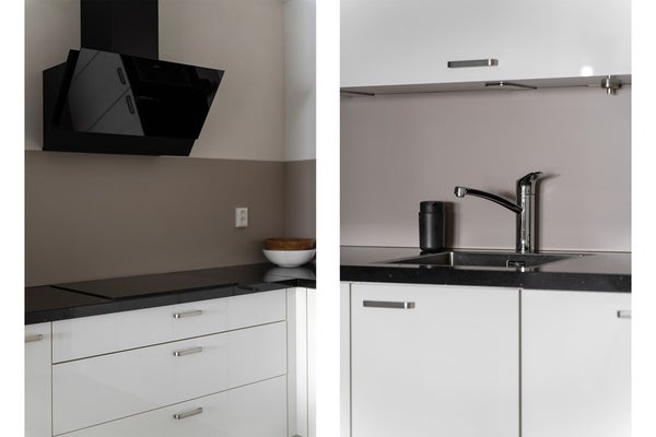 Toilet: Het separate toilet is keurig afgewerkt met zwart-witte tegels en beschikt over een zwevend toilet en een klein fonteintje. Mechanische ventilatie zorgt voor een aangename luchtcirculatie.