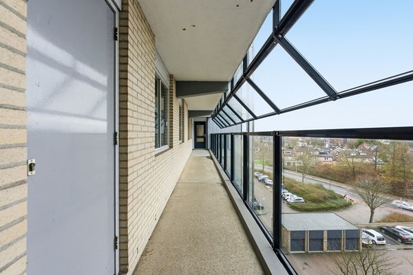 U betreedt het appartementencomplex via de centrale entree met intercomsysteem en brievenbussen. Vanuit hier bereikt u via de trap of de lift moeiteloos de zesde verdieping van dit verzorgde complex.