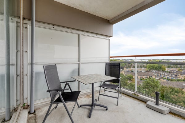 • De galerijflat heeft een woonoppervlakte van 84 m² en beschikt over 3 kamers, waarvan 2 slaapkamers;
