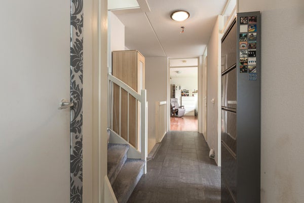 De indeling van de woning is praktisch. De begane grond heeft een entree met toegang tot de woonkamer en de gestucte woonkeuken. De keuken is voorzien van moderne apparatuur. Via de keuken komt u in de tuin die op het westen ligt. De eerste verdieping heeft drie slaapkamers en een badkamer met inloopdouche en ligbad. De tweede verdieping heeft een grote slaapkamer, kitchenette en mogelijkheden voor een dakterras.
