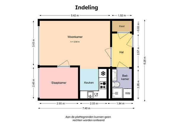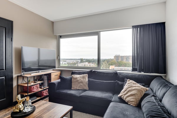 - De portiekflat heeft een woonoppervlakte van 43 m² en beschikt over 2 kamers, waarvan 1 slaapkamer;