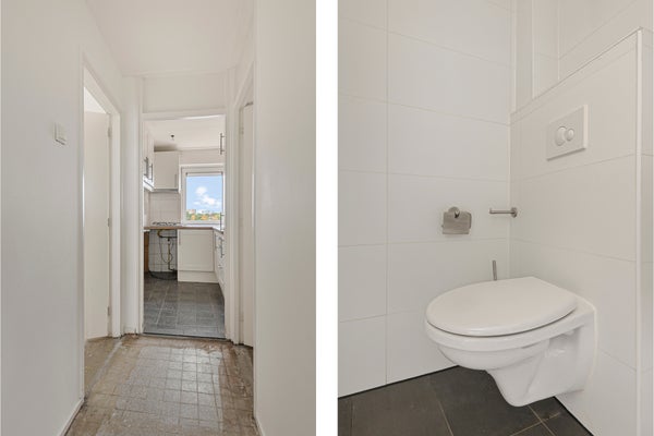 - De portiekwoning heeft een woonoppervlakte van 64 m² en beschikt over 3 kamers, waarvan 2 slaapkamers;