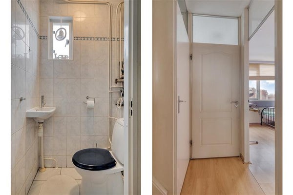 Stap binnen via de entree, waar je meteen welkom wordt geheten door een slimme garderobe. Vanuit hier heb je toegang tot een lichte woonkamer met laminaatvloer en een charmant eetgedeelte, perfect om samen met vrienden of familie te genieten van lekkere maaltijden. De trapopgang in de hal leidt je naar de rest van de woning, waardoor alles netjes en overzichtelijk is ingedeeld.