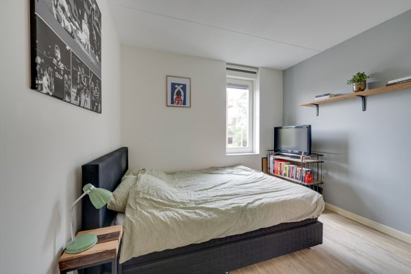 • De bovenwoning heeft een woonoppervlakte van 43 m² en beschikt over 2 kamers, waarvan 1 slaapkamer;
