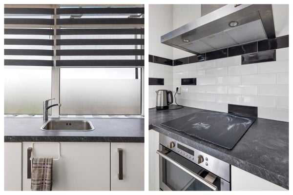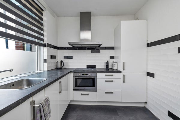 De ruime L-keuken is gelegen aan de voorzijde van de woning, van alle gemakken voorzien met een vaatwasser, inductie kookplaat, oven, afzuigkap en een inbouw koelkast & vriezer.