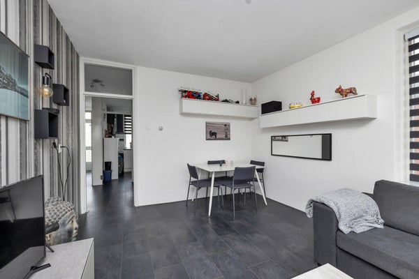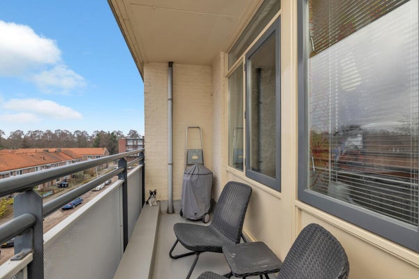 De woonkamer heeft aan de voorzijde veel lichtinval en vrij uitzicht, aangrenzend het balkon circa 4 m² te bereiken vanuit de woonkamer via een gesloten deur en gelegen op het zuiden; ideaal om te genieten van de middag- en avondzon.