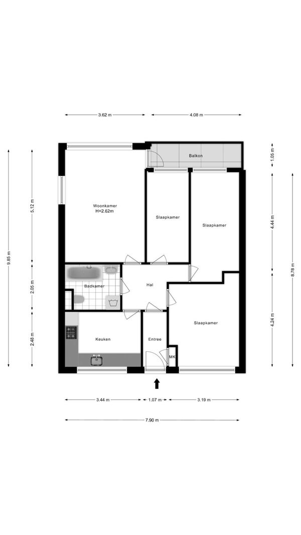 - De galerijflat heeft een woonoppervlakte van 73 m² en beschikt over 4 kamers;