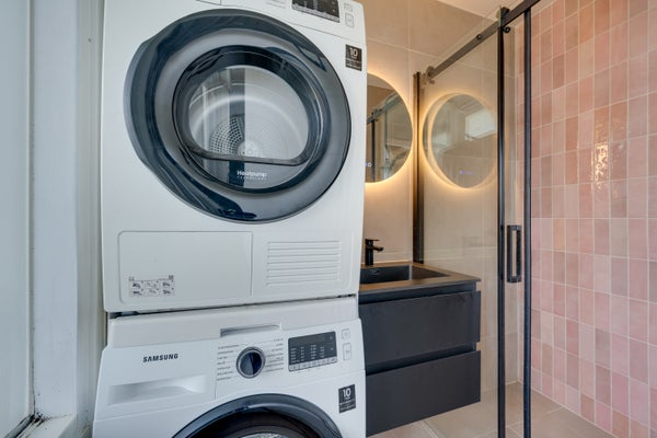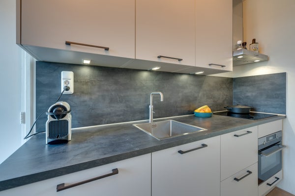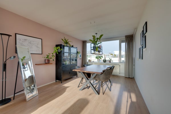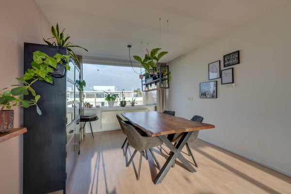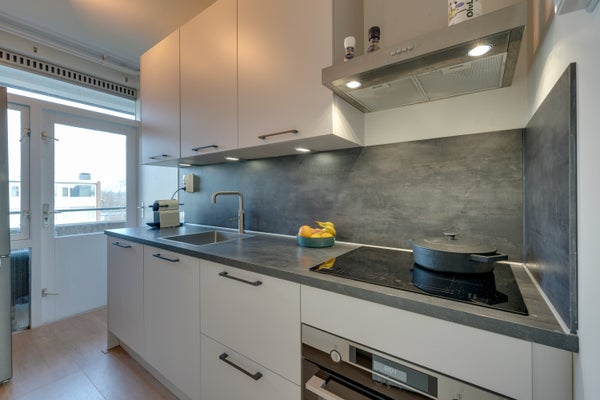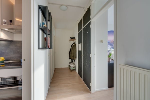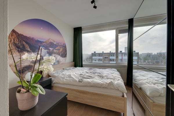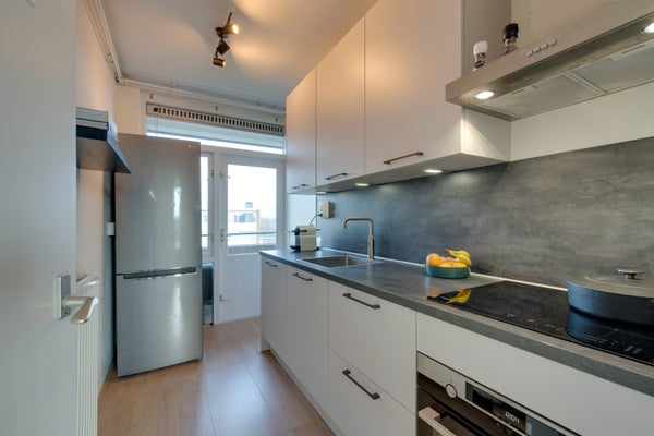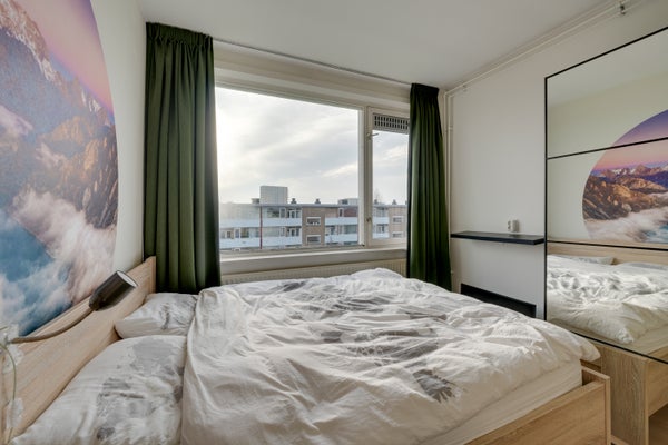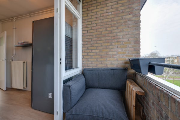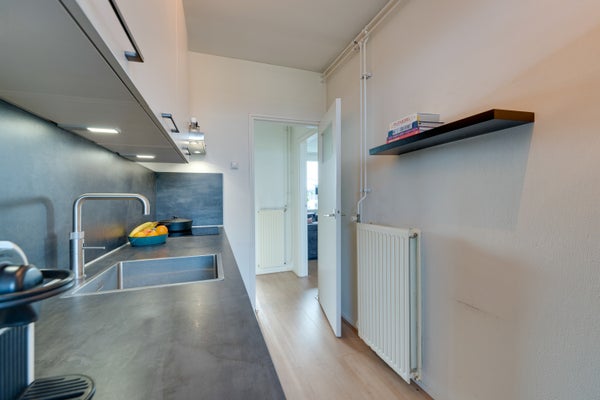 Dit startersappartement op de 4e verdieping biedt veel lichtinval en een vrij uitzicht. Het heeft 1 slaapkamer, voorheen 2, en een ruime living met laminaatvloer die door heel de woning ligt. De luxe keuken is in 2021 vernieuwd en beschikt over moderne apparatuur zoals een inductiekookplaat en een vaatwasser. De prettige badkamer is ook recentelijk verbeterd en beschikt over een douchehoek, wastafel en aansluitingen voor de wasmachine en droger.