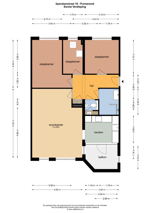 - De portiekflat heeft een woonoppervlakte van 81 m² en beschikt over 4 kamers, waarvan 3 slaapkamers;