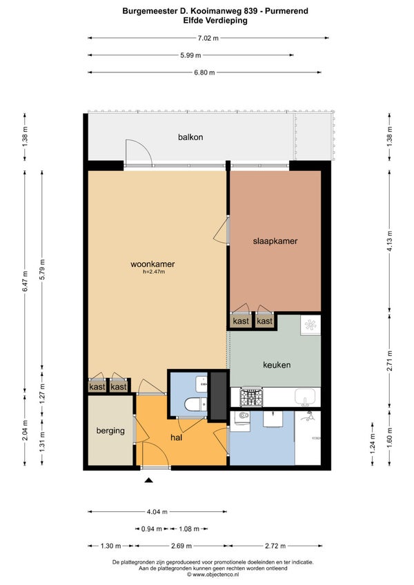 - De portiekflat heeft een woonoppervlakte van 58 m² en beschikt over 2 kamers, waarvan 1 slaapkamer;