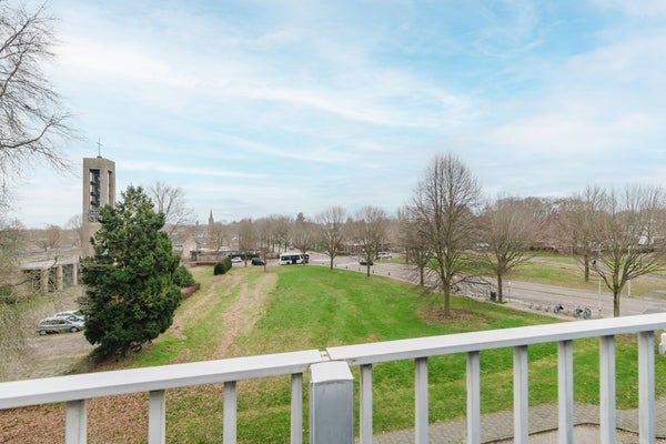 Indeling: Hal met meterkast, toilet met fontein (2024), bergkast, opstelling cv ketel, slaapkamer, nette badkamer voorzien van een ligbad met douche, wastafel en aansluitpunten voor wasmachine en droger. Royale woonkamer met toegang tot het balkon. Open keuken met diverse inbouwapparatuur zoals 5-pits gaskookplaat, afzuigkap, combioven, vaatwasser en een koel- vriescombinatie. Vanaf het balkon is het heerlijk genieten van het vrije uitzicht over het groen richting het centrum. Woonkamer en hal zijn voorzien van een laminaatvloer.