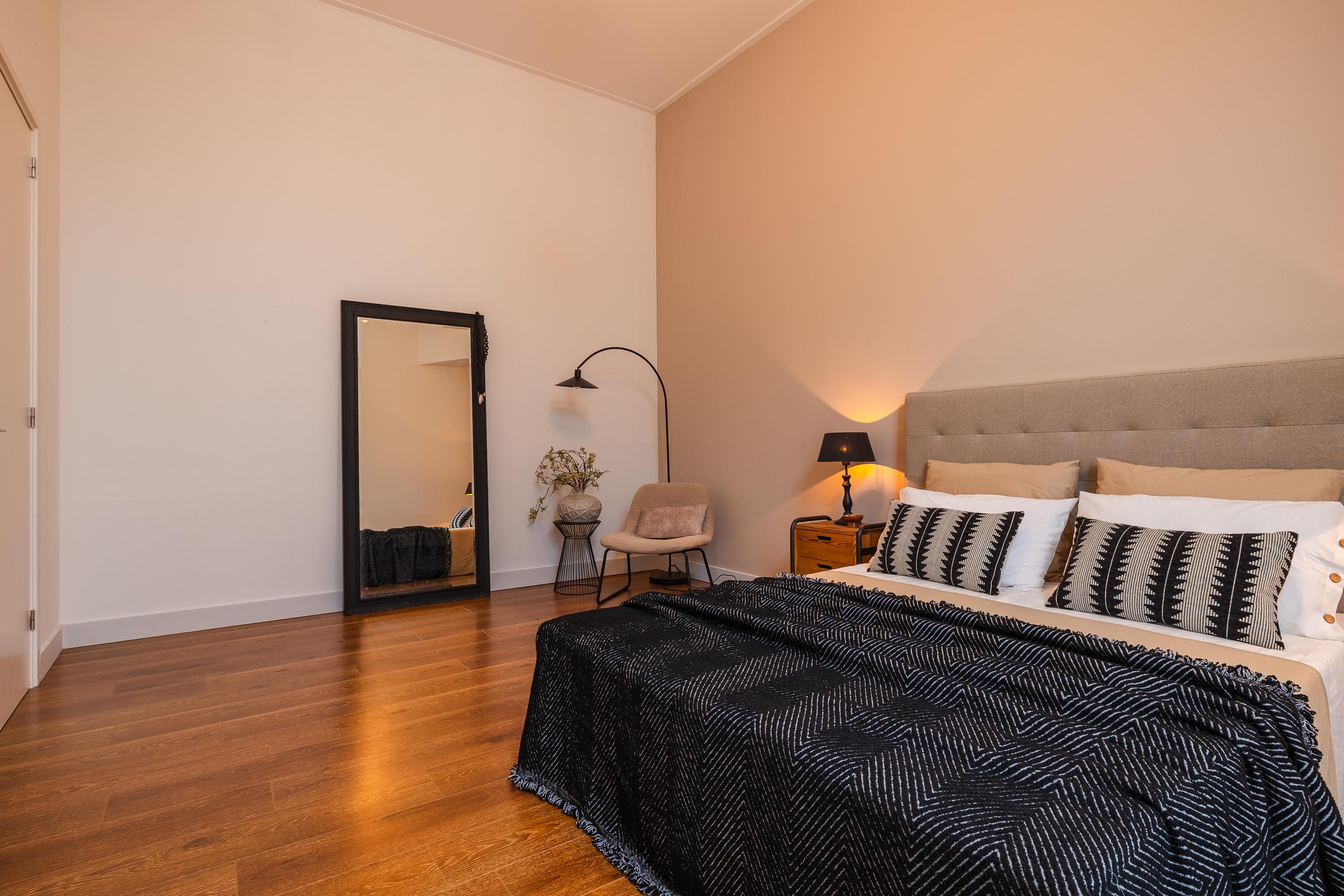 - De galerijflat heeft een woonoppervlakte van 100 m² en beschikt over 3 kamers, waarvan 2 slaapkamers;