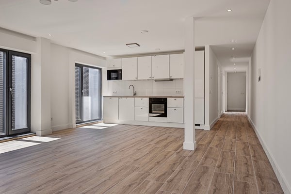 - De galerijflat heeft een woonoppervlakte van 87 m² en beschikt over 3 kamers, waarvan 2 slaapkamers;