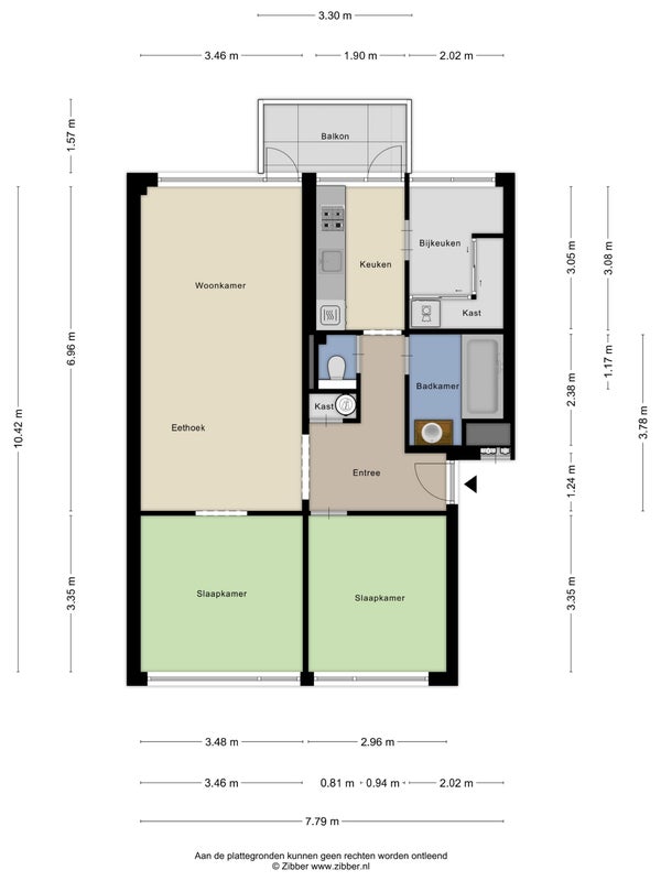 - De galerijflat heeft een woonoppervlakte van 74 m² en beschikt over 3 kamers, waarvan 2 slaapkamers;