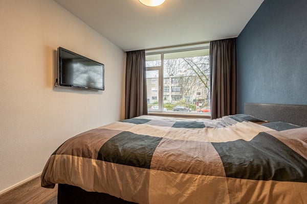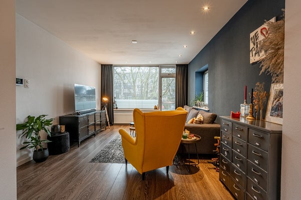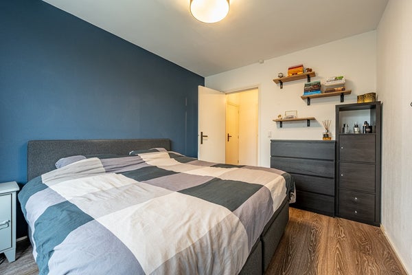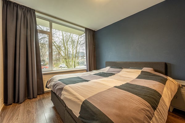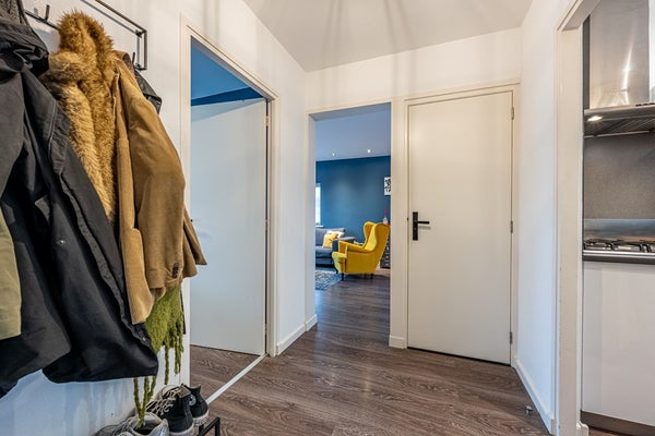 - De portiekflat heeft een woonoppervlakte van 64 m² en beschikt over 3 kamers, waarvan 2 slaapkamers;