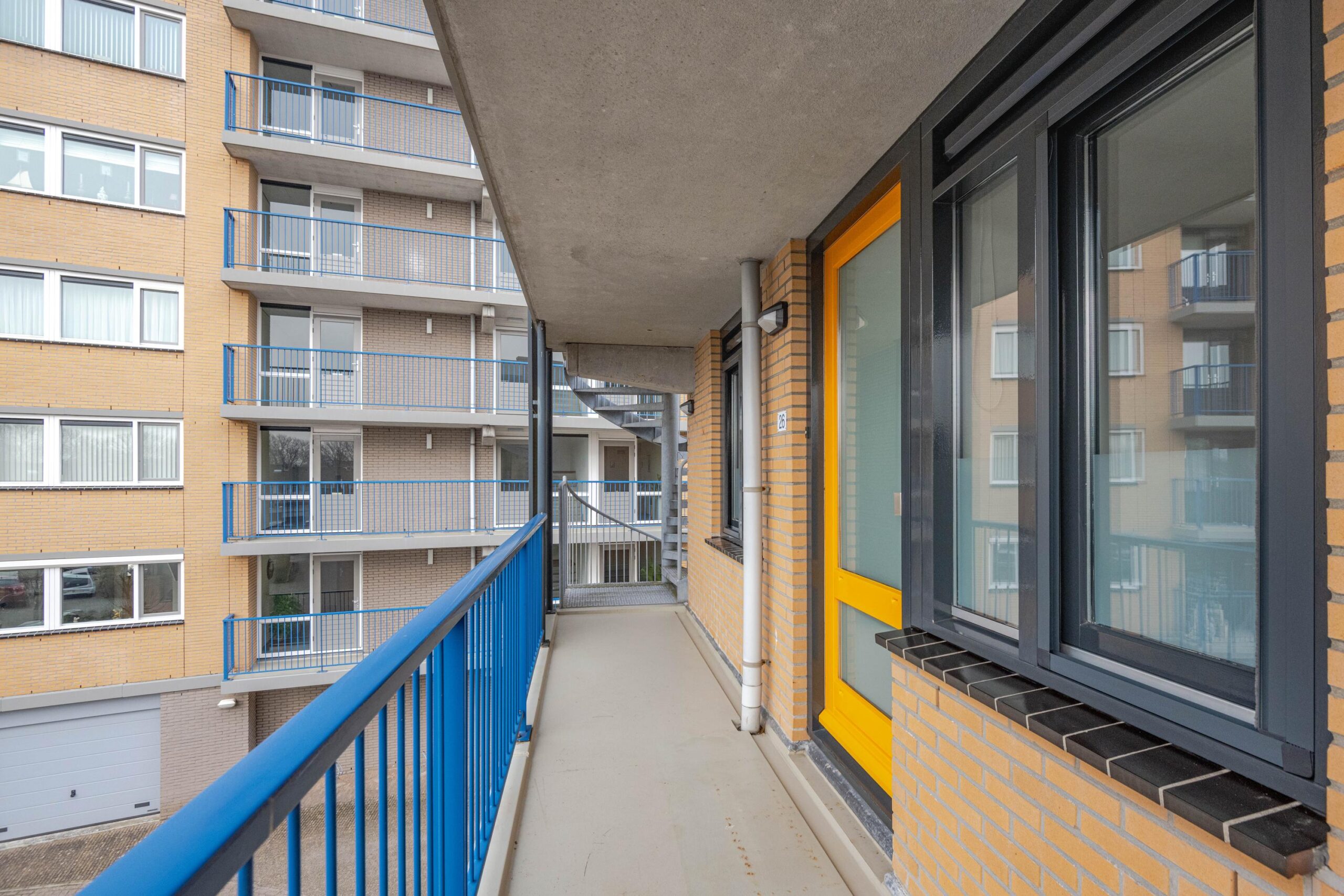 - De galerijflat heeft een woonoppervlakte van 69 m² en beschikt over 3 kamers, waarvan 2 slaapkamers;