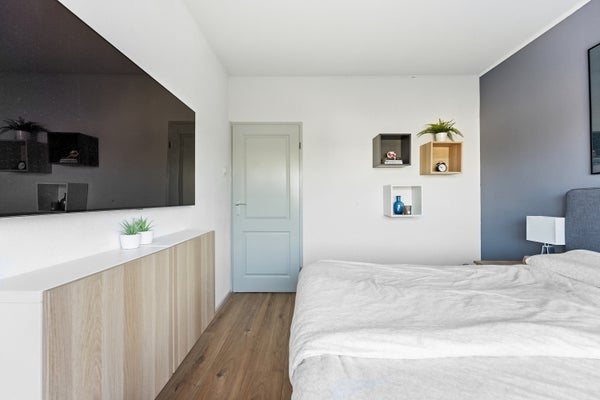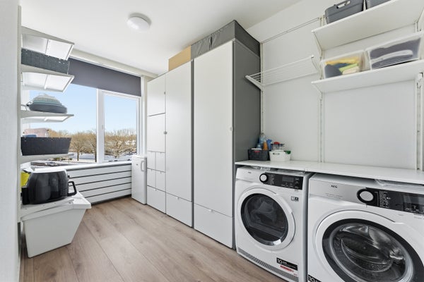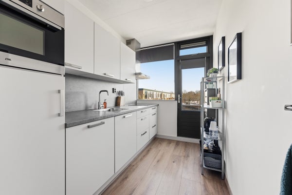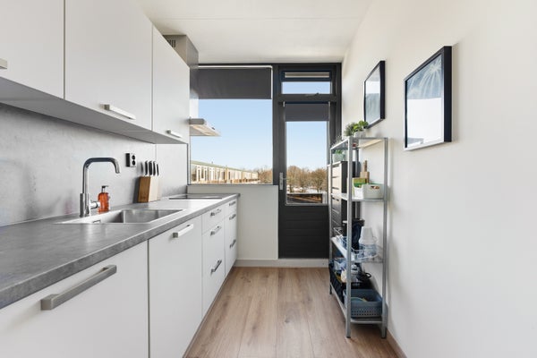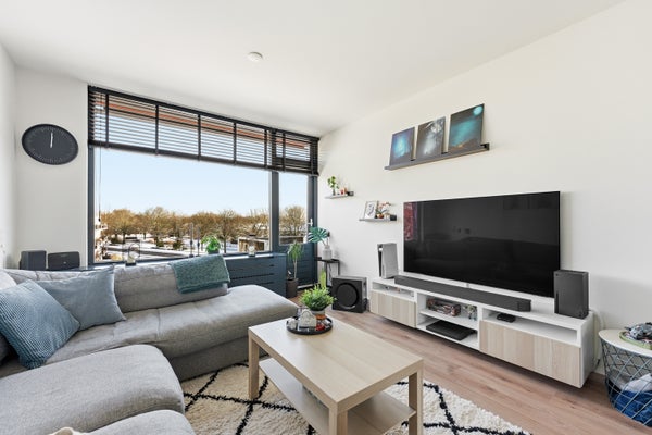 Bij binnenkomst in het appartement vind je een ruime hal die toegang biedt tot diverse vertrekken. De woonkamer beschikt over een airco en een balkon met vrij uitzicht op de Vondellaan en groen. De grote slaapkamer ligt aan de voorzijde, en aan de achterzijde bevindt zich een derde slaapkamer, momenteel in gebruik als waskamer. De moderne badkamer is uitgerust met een inloopdouche en wastafel, terwijl de keuken achteraan ligt en toegang biedt tot het balkon.