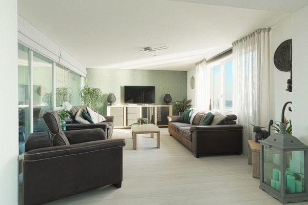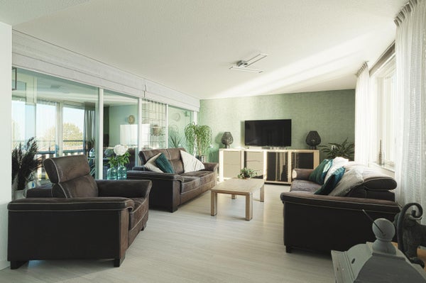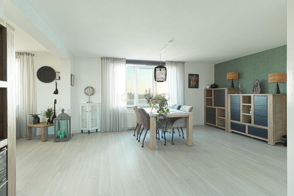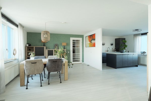 - De portiekflat heeft een woonoppervlakte van 155 m² en beschikt over 4 kamers, waarvan 2 slaapkamers;