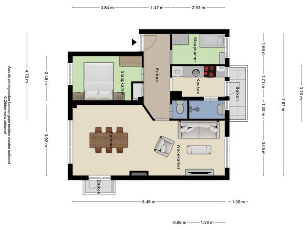 - De portiekflat heeft een woonoppervlakte van 62 m² en beschikt over 4 kamers, waarvan 2 slaapkamers;