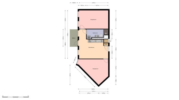 - De galerijflat heeft een woonoppervlakte van 69 m² en beschikt over 3 kamers, waarvan 2 slaapkamers;